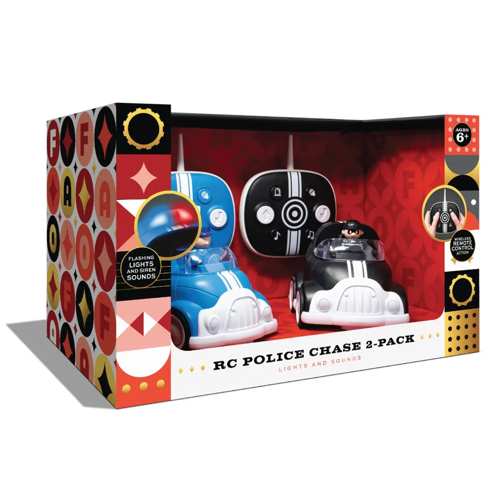 Questo Set Di Macchinine Telecomandate Con Luci E Suoni Fao Schwarz Ti Danno Il Massimo Del Divertimento. Colpisci L’Altra Macchinina, Gira A Sinistra, Fai Zig Zag A Destra O Girare A Destra In Retromarcia Per Superare Il Tuo Avversario Mentre Cerchi Di Recuperare O Scappare. Luci E Sirene Realistiche: Ogni Volta Che Acceleri Il Tuo Motore È Più Eccitante Quando Hai Luci Lampeggianti E Suoni Di Sirena. È Come Se Fossi In Un Vero Inseguimento Della Polizia. Grande Regalo Per I Bambini: Ogni Bambino Ama Il Classico Gioco Di Poliziotti E Ladri. Aggiungi I Radiocomandi, Luci E Sirene? Avranno Ore E Ore Di Divertimento. È Un Grande Regalo Per Ragazzi O Ragazze Per Compleanni, Natale E Altro Ancora.2,4 Ghz Controlli Wireless